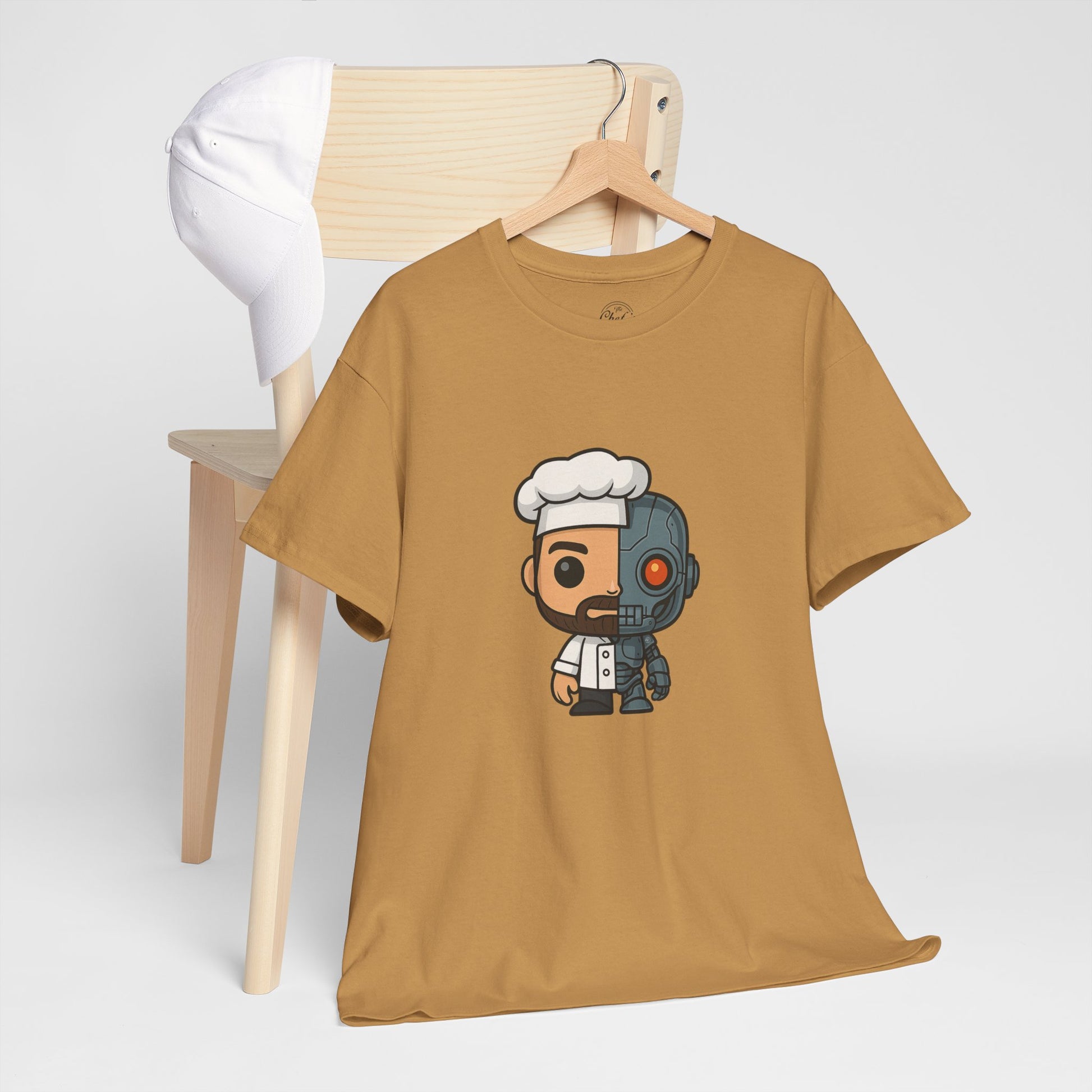 Step into the future of flavour with the Cyborg Chef tee — where culinary mastery meets machine precision. This bold, original design features a half-human, half-robot chef character, seamlessly blending tradition with tech. Whether you’re plating up in the kitchen or powering through your day, this shirt serves up style with a side of sci-fi.